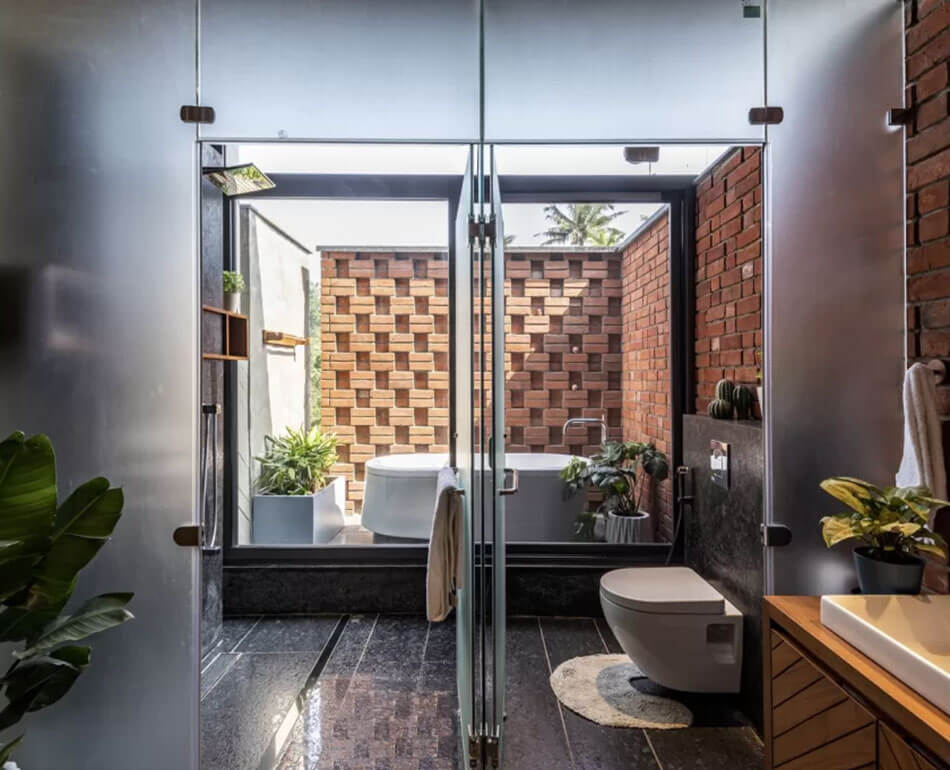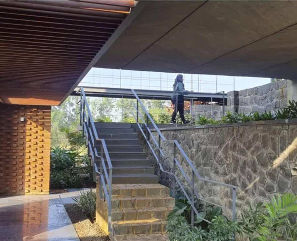 Purity In Material Exploration: Staying true to nature became the key determinant in pursuing a purist approach through material expression. Composite structures (Exposed R.C.C., Steel and Glass, basalt masonry, free-standing exposed brick walls) were devised to explore this idea further.