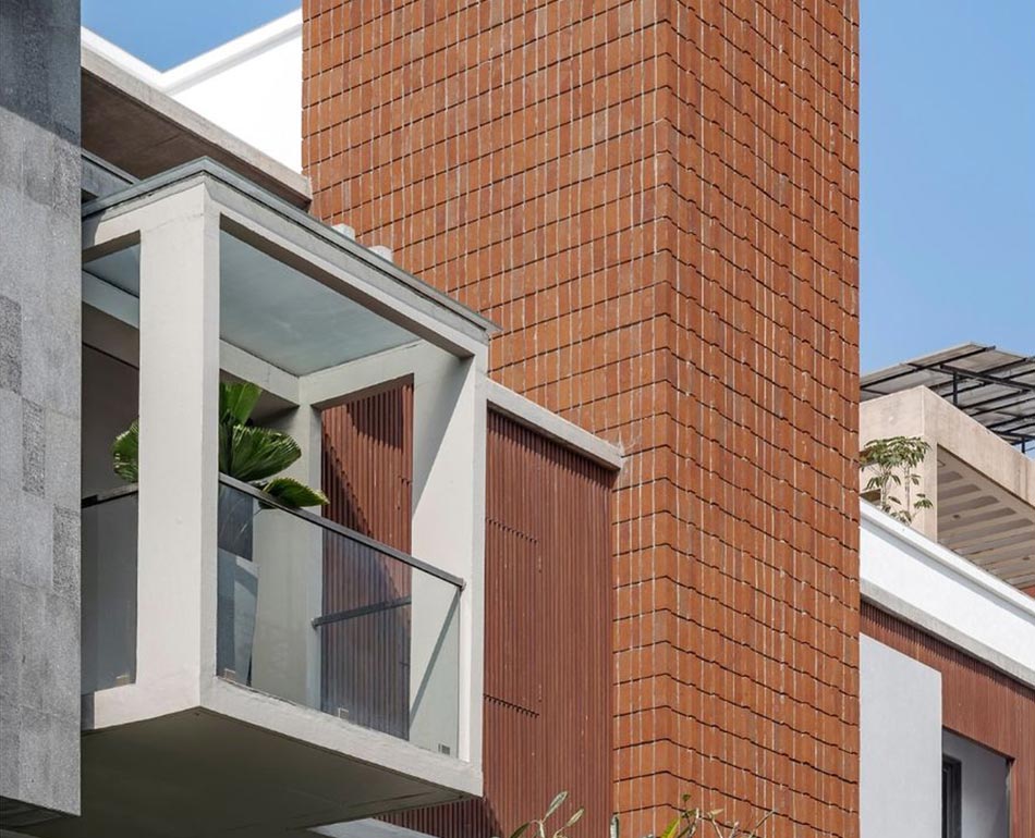 This project transforms client aspirations into a programmatically dense yet elegantly flowing residence. The house extends along the society road, leveraging the South-Eastern sun, with common areas oriented towards the garden, basking in natural light through substantial overhangs