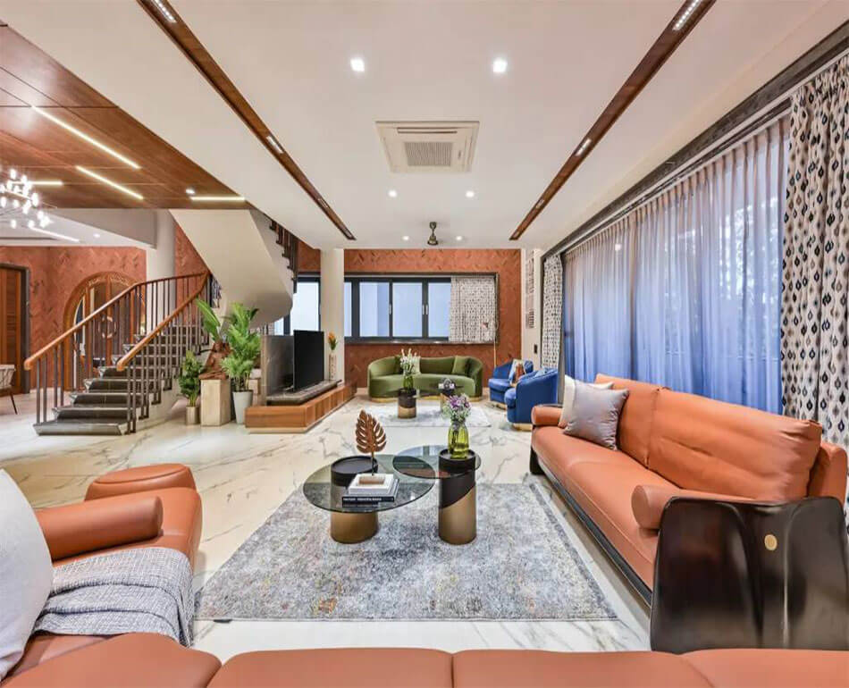 This 10,900-sq-ft home is located on a busy street in the densely populated Adajan locality, Surat.