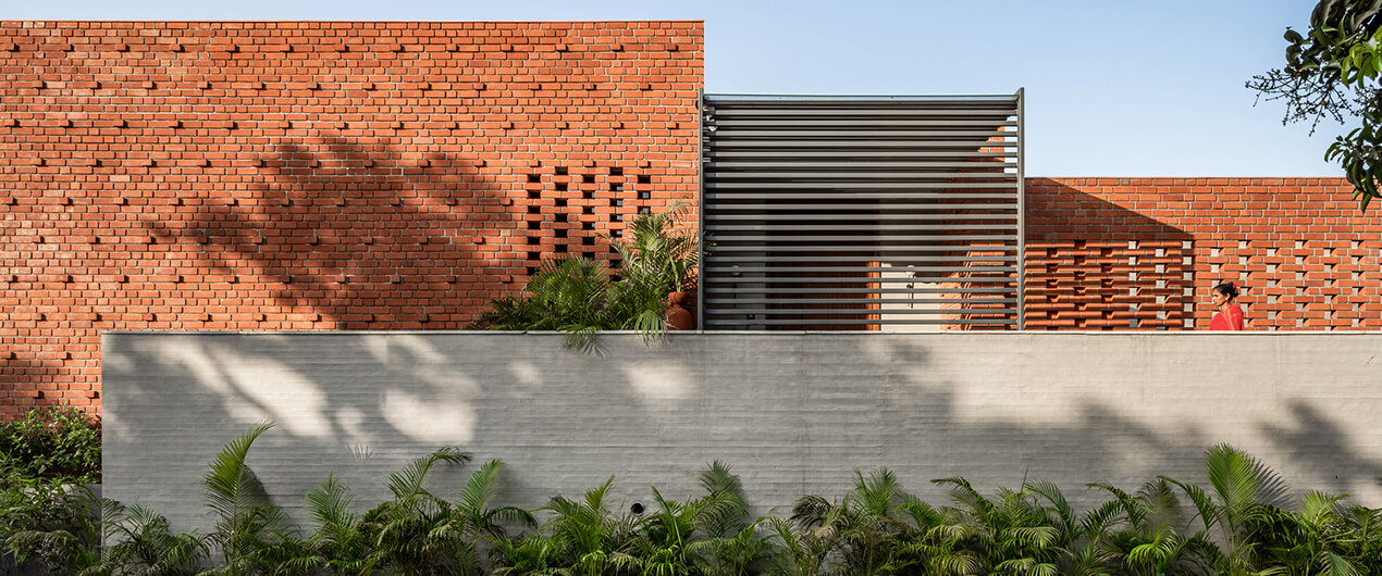 The house is also designed as a sustainable and self-sufficient entity, harnessing energy from solar panels recessed and hidden on the roof, while the implementation of percolation wells on the edges helps in preserving the groundwater level. The rainwater is harvested and utilized for the house’s multiple water demands. The home is built around the notion of coexisting with nature, allowing for smooth transitions and giving its occupants a tranquil retreat where they may unwind and connect with the outside world. The house weaves the built mass that embarks on Indian traditional elements and arts, creating balance and visual harmony. The spaces with this meditative nature are woven through an intricate fabric of green layers and materiality inside out, defining the house truly as an earth’s child.