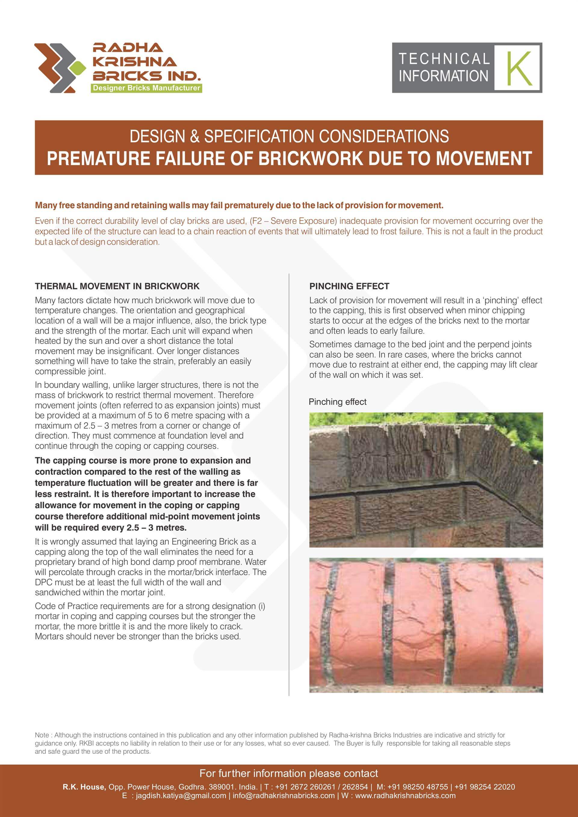 Design & Specification Considerations Premature Failure Of Brickwork Due To Movement