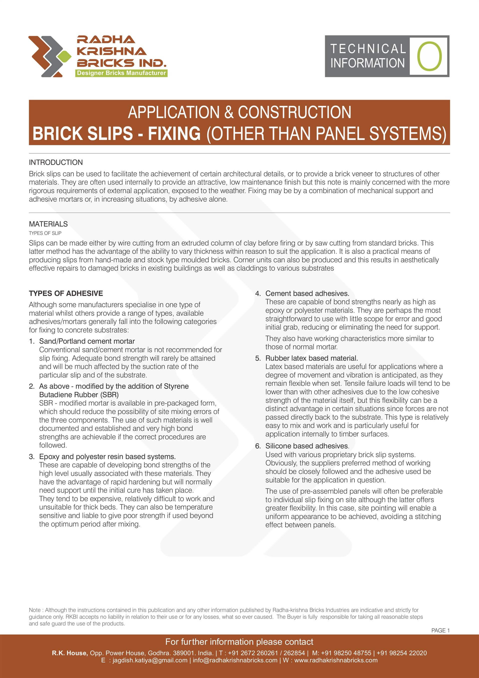 Application & Construction Brick Slips - Fixing (Other Than Panel Systems)